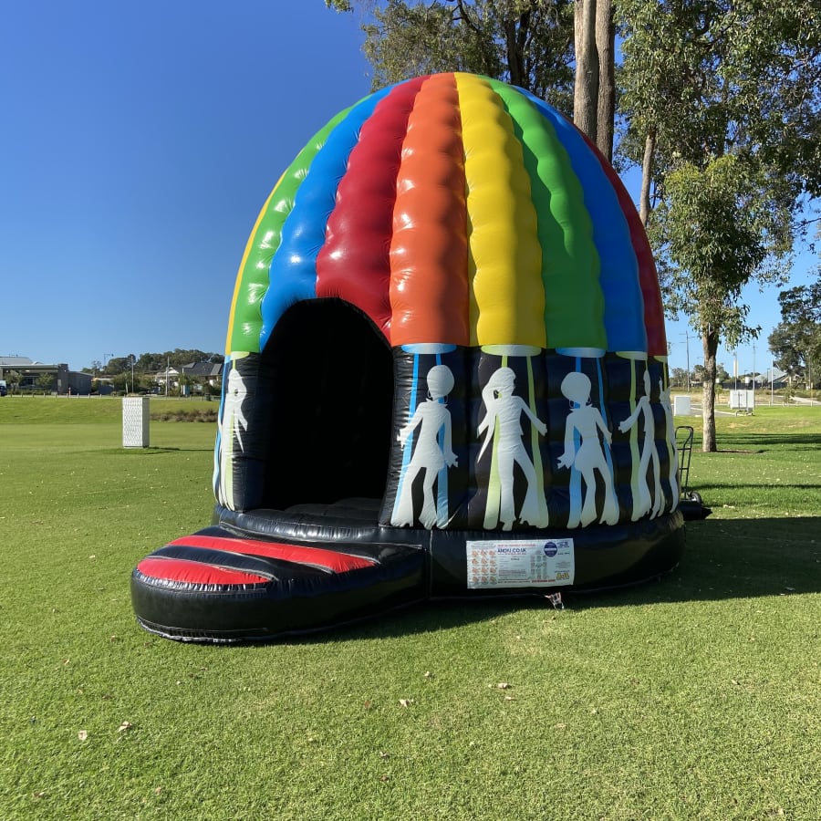 Brand new for 2021. Our customers asked for it so here it is !! Fully enclosed disco dome with Bluetooth speaker for the ultimate experience. Featuring a fully black lined interior. Only the disco ball will be proving you the light to dance and bounce about all day and night. This is going to be very popular so get it booked in quick for your next party.