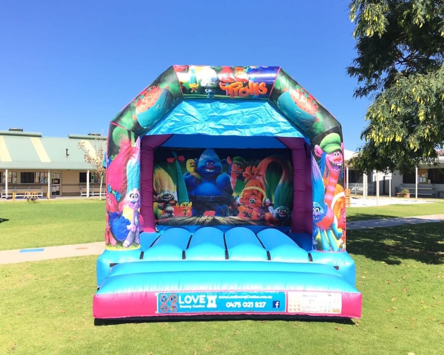 Love Bouncy Castles offers the ultimate TROLLS DISCO jumping castle experience for your child’s party in Perth. Watch the children’s faces light up with joy as we blow up the bouncy castle in your back yard/park/community hall. All our castles have a roof cover to protect you from the sun and/or rain.