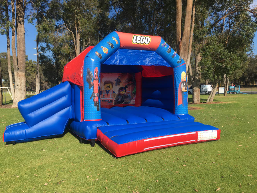Love Bouncy Castles offers the ultimate LEGO JUMPING CASTLE experience for your child’s party in Perth. Watch the children’s faces light up with joy as we blow up the bouncy castle in your back yard/park/community hall. All our castles have a roof cover to protect you from the sun and/or rain and our combo castle FEATURES A SLIDE!