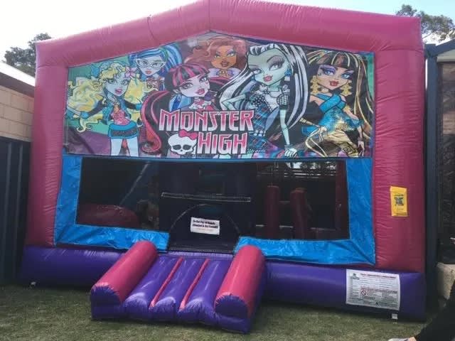 We proudly provide BOUNCY CASTLES JUMPING CASTLES Monster High Combo Bouncy Castle in rockingham perrth western australia. Whether it’s a backyard birthday, a school fete, or a community festival, our fast and reliable delivery ensures your Monster High Combo Bouncy Castle arrives on time, every time. 🎈📦