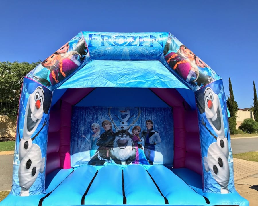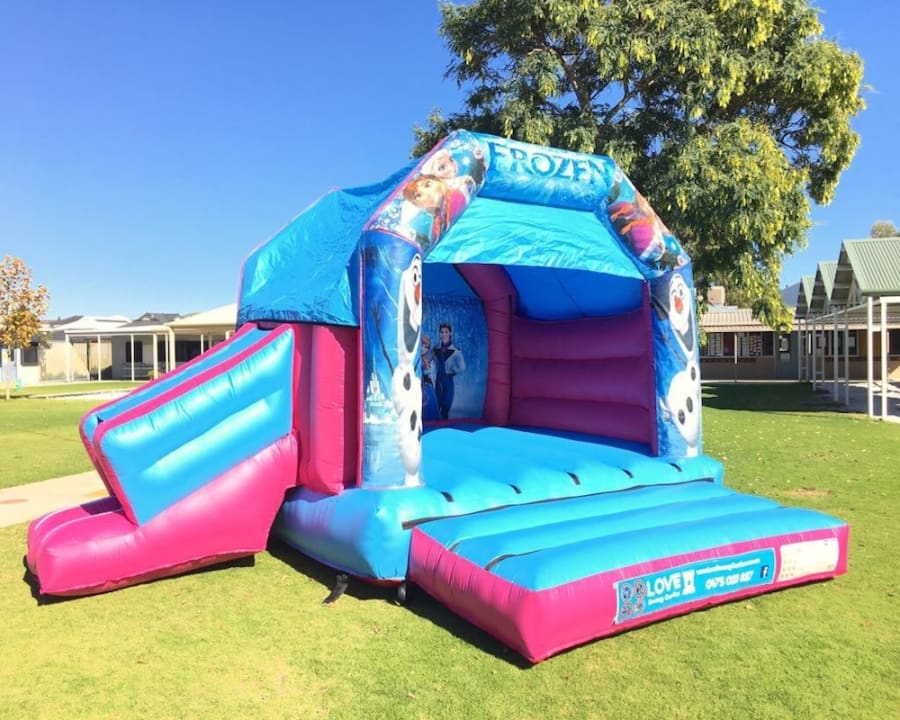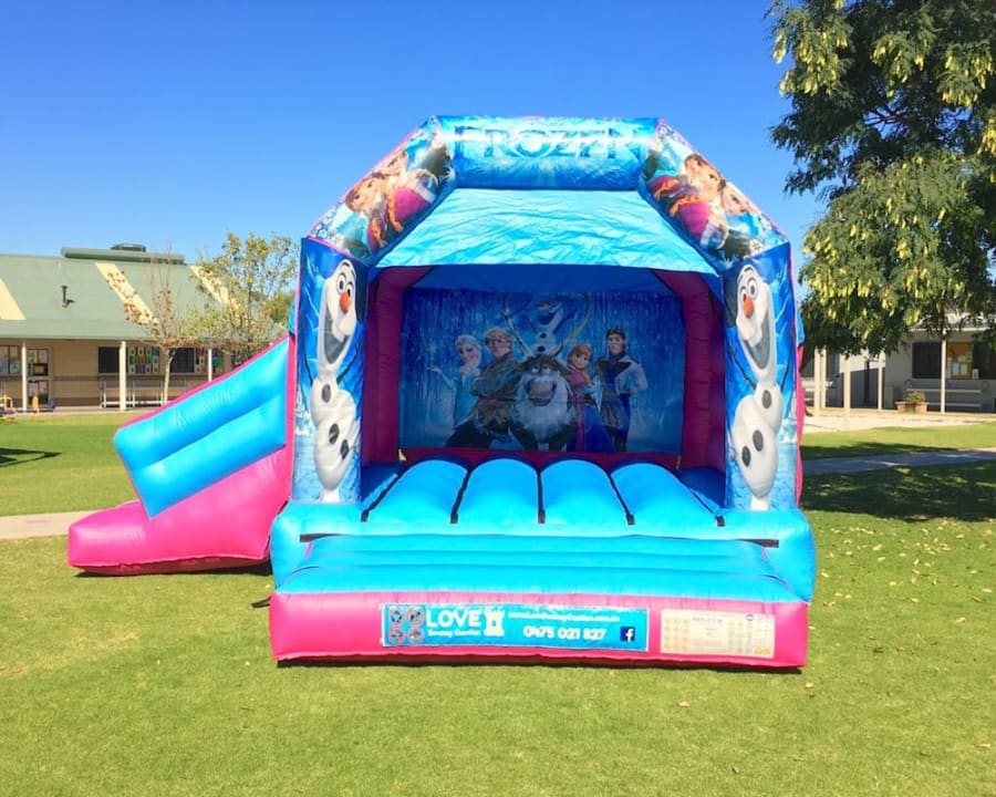 Bring Elsa, Anna, Olaf and the gang back to life with this FROZEN DISCO jumping castle! Love Bouncy Castle will bring the BIGGEST SMILE to your child’s face when they are jumping, dancing & singing to their hearts content along with their friends to the Frozen soundtrack INSIDE the castle! All our castles have a roof cover to protect you from the sun and/or rain and our combo castle FEATURE A SLIDE!