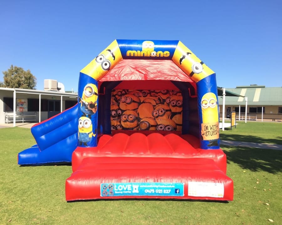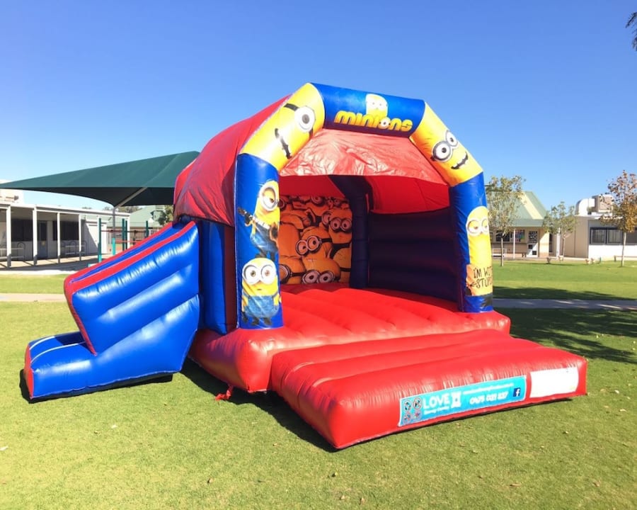 Love Bouncy Castles offers your child’s party the best MINIONS DISCO jumping castle (WITH SLIDE) in Perth! Watch them bounce, dance and sing with their friends INSIDE the castle to their favourite music. It will make for an extra special party for sure! All our castles have a roof cover to protect you from the sun and/or rain.