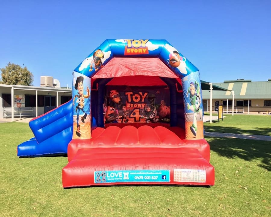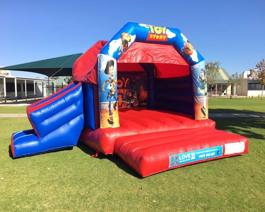 Love Bouncy Castles offers your child’s party the best TOY STORY DISCO jumping castle in Perth! A combo castle HAS A SLIDE coming off of the side of the main jumping area! Come and jump around with Woody, Buzz Lightyear and the gang! All our castles have a roof cover to protect you from the sun and/or rain.