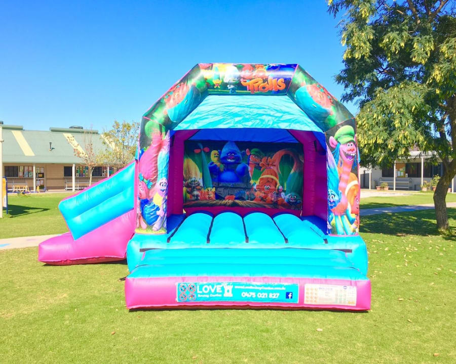 Sit back, relax and watch as your child’s face lights up as they dance and bounce around with their friends whilst listening to their favourite music INSIDE the castle. A combo castle HAS A SLIDE coming off of the side of the main jumping area! All our castles have a roof cover to protect you from the sun and/or rain.