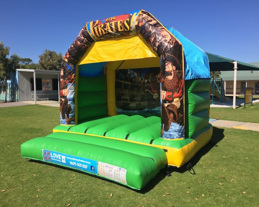 Love Bouncy Castles offers your child’s party the best PIRATE DISCO jumping castle in Perth! Watch them bounce, dance and sing with their friends INSIDE the castle to their favourite music. It will make for an extra special party for sure! All our castles have a roof cover to protect you from the sun and/or rain.