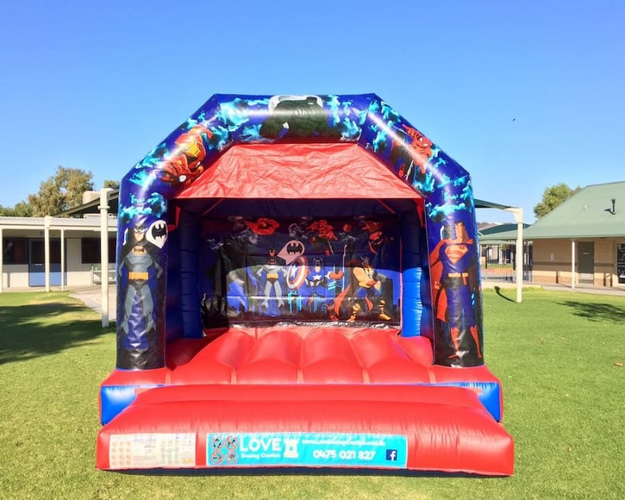 Love Bouncy Castles offers the ultimate SUPERHERO DISCO jumping castle experience for your child’s party in Perth. Watch the children’s faces light up with joy as we blow up the bouncy castle in your back yard/park/community hall. All our castles have a roof cover to protect you from the sun and/or rain.