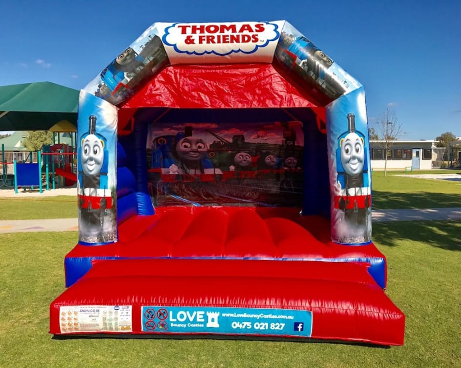 Sit back, relax and watch as your child’s face lights up as they dance and bounce around with Thomas and friends whilst listening to their favourite music INSIDE the castle. All our castles have a roof cover to protect you from the sun and/or rain.