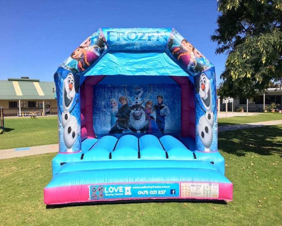 Bring Elsa, Anna, Olaf and the gang back to life with this FROZEN DISCO jumping castle! Love Bouncy Castle will bring the BIGGEST SMILE to your child’s face when they are jumping, dancing & singing to their hearts content along with their friends to the Frozen soundtrack INSIDE the castle! All our castles have a roof cover to protect you from the sun and/or rain.